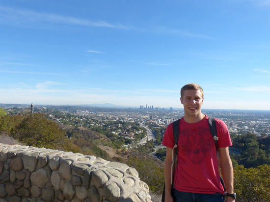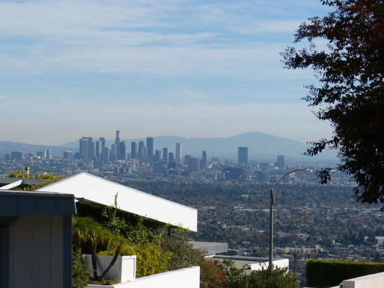 Zum Schluss der Tour geht es dann noch mal hinauf zu einem Aussichtspunkt, von dem man einen wirklich fantastischen Blick auf Los Angeles hat. Es ist unfassbar, auf was für einer riesigen Fläche sich diese Stadt erstreckt. Das liegt zum Einen an der übertriebenen Breite selbst unbefahrener Nebenstraßen und zum Anderen an dem unfassbar hohen Anteil an Einfamilienhäusern, was bei ca. 15 Millionen Menschen im gesamten Großraum eine entsprechend riesige Fläche verbraucht und es Touristen echt unmöglich macht, die Stadt zu Fuß zu erkunden.