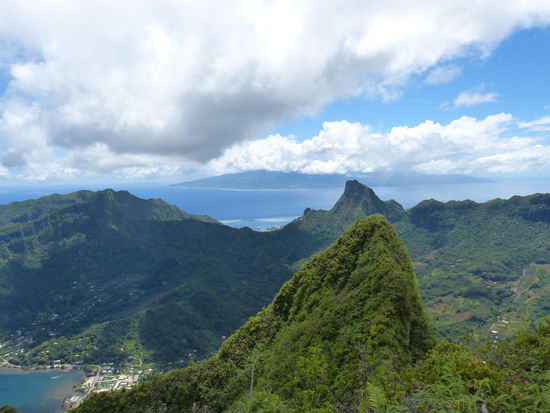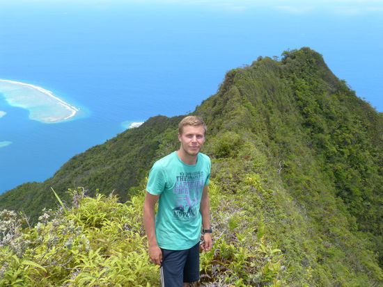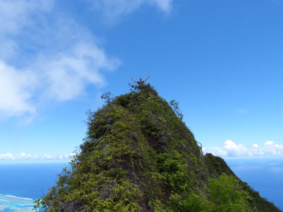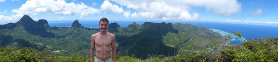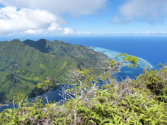 Nach vier Stunden und mit aufgeschürften Beinen und Armen haben wir den Gipfel in 899 Metern Höhe erreicht. Es ist der zweithöchste Berg der Insel und entsprechend ungestört reicht der Blick in alle Himmelsrichtungen bis weit in die Ferne. Doch bevor ich anfange zu erzählen, wie sich die dunkle Silouhette Tahitis hinter den grünen Bergen Mooreas aus dem Meer erhebt und wir sogar die Lagune auf der anderen Seite "unserer" Insel sehen können, lasse ich einfach mal die Fotos für sich sprechen.