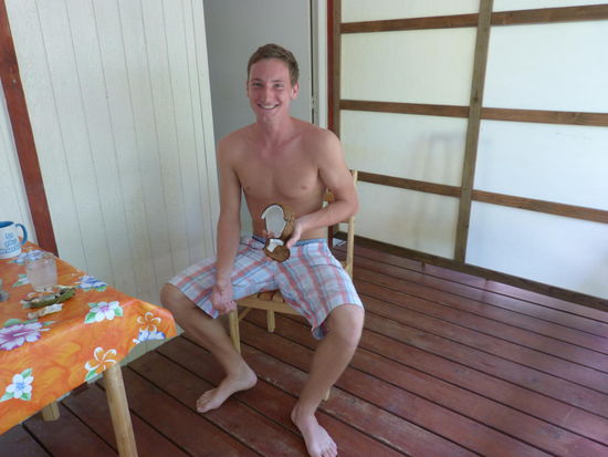 Doch Zuhause angekommen lässt uns bereits der erste Bissen frische Ananas alle Strapazen des Ausflugs wieder vergessen. Der Geschmack ist wirklich fantastisch und es ist fast unmöglich, in Deutschland eine so süße und fruchtsäurearme Ananas zu bekommen. Die Papayas sind auch gut und dazu gibt es noch ein Stück Kokosnuss von gestern. Die liegen hier wirklich überall rum und selbst die schwarzen, die man für längst vergammelt halten würde, sind innen noch frisch und aromatisch.