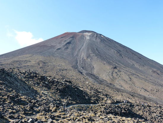Der Weg selbst ist so was wie "der Weg nach Mekka" Neuseelands und ist entsprechend unfassbar überlaufen. Die Landschaft ist karg und vegetationsarm und nach knapp zwei Stunden laufen, kommt man an die Hänge des Mount Ngauruhoe, ein Vulkan, der dem Misti, den wir in Peru bestiegen, haben unfassbar ähnelt. Sieht wirklich fast genauso aus, nur kleiner.