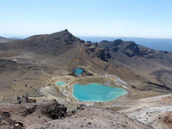 Im Bus ist es leider genauso kalt und als wir irgendwann gegen 7 Uhr den Startpunkt für die Bergüberquerung erreichen, ist es dank des fürchterlichen Windes sogar noch kälter. Vor uns liegt ein knapp 20 Kilometer langer Track, Tongariro Alpine Crossing genannt. 1886 Meter ist der höchste Punkt des Weges hoch und da einer der zu umlaufenden Vulkane 2012 ausgebrochen ist, bekommen wir vorher noch ein paar kurze Sicherheitsinstruktionen mitgeteilt, sowie ein Bild von einem damals in Pompei durch den Vesuvausbruch zu Staub versteinerten Menschen. Sehr beruhigend.