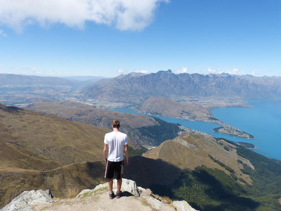 Die Baumgrenze ist schneller erreicht als erwartet und ab hier geht es dann durch eine steppenähnliche Vegetation immer weiter den Kamm hinauf. Immerhin über 1.700 Meter ist der Gipfel hoch, von dem aus man einen gigantischen Blick in alle vier Himmelrichtung hat. Queenstown selbst ist leider zum Großteil von einem kleinen Bergausläufer verborgen, aber das tut dem Gesamtpanorama kein Abbruch.