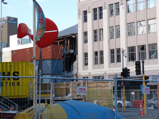 Endlich in Christchurch angekommen, trifft uns dann ziemlich der Schlag, in was für einer fürchterlichen Stadt wir hier gelandet sind, bis uns wieder einfällt, dass hier im Januar 2011 ein schweres Erdbeben gewütet hat. Die Trümmer sind zwar inzwischen weggeräumt, aber abgesehen davon wirken große Teile des Zentrums immer noch wie kurz nach dem Krieg, eine wahre Geisterstadt. Auf großen Flächen sind nur noch Betonfundamente übrig, die Häuser, die noch stehen, sind eingerüstet oder mit Absperrband und Bauzäunen verriegelt. Man fragt sich ein bisschen, wie es ein hoch entwickeltes, reiches Land, wie Neuseeland eins ist, in vollen drei Jahren nicht schaffen konnte, die Innenstadt zumindest halbwegs wieder aufzubauen. Will man sich gar nicht vorstellen, wie es hier unmittelbar nach dem Beben aussah.