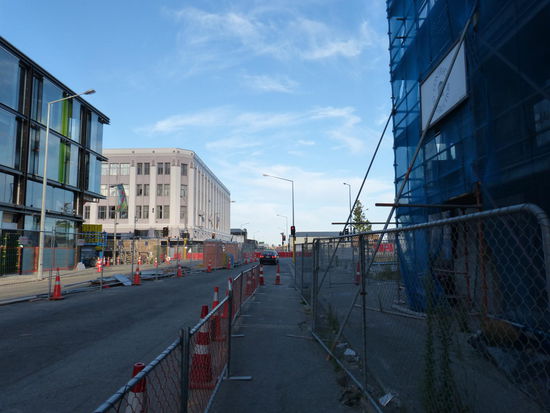 Zu Fuß am provisorischen Hauptbusbahnhof angekommen, bietet sich genau das gleich Bild. Die Straße ist hier soweit abgesackt, dass jeder zweite Bus beim Einbiegen zur Haltestelle mit der Stoßstange über den Asphalt schrammt und beim wieder losfahren gleich noch mal aufsetzt. In drei Jahren haben sie es nicht mal geschafft, wenigstens die Straße am Hauptbahnhof zu reparieren? Das ist eben die Kehrseite der entspannten, sorglosen, alles mit der Ruhe Lebenseinstellung der Neuseeländer.