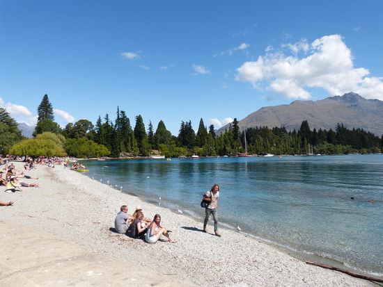 Nach einem langen Abend folgt ein langer Morgen und zum Wandern besteht nach dem Aufstehen auch kein großer Drang, weshalb wir uns auf Queenstown selbst konzentrieren. Wie gesagt, es ist ein durch und durch von Touristen überlaufener Ort, der jedoch gerade deswegen mit seinem geschäftigen und wuseligen Charme überzeugen kann. Und auch wenn das Wasser zum Baden zu kalt ist, kann man hier entspannt an den Ufern des Lake Wakatipu liegen und die heißen Strahlen der Sonne genießen, die vom fast immer wolkenlosen Himmel herabscheint.