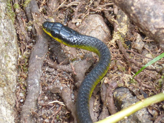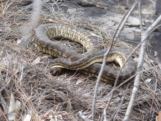 Der eigentliche Besucherparkplatz ist erst zwei, drei Kilometer weiter, am Ende der Straße, aber weil zwischendrin immer wieder ein Fluss über den Weg flutet, entscheiden wir uns lieber für einen Fußmarsch. Es gibt eigentlich zwei Wasserfälle, aber der Weg zum hinteren ist durch den Zyklon vor einer Woche gesperrt. Der vordere ist aber auch sehr schön und da wir die giftig aussehende Schlange erst auf dem Rückweg antreffen, können wir das kühle Nass auch noch ganz entspannt genießen.
