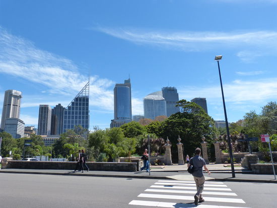 Na gut, müssen wir eben noch mal wiederkommen nach Australien. Gibt Schlimmeres. Das Gepäck wird untergestellt und durch den Hyde Park geht es dann zu Fuß zu dem Parkareal um die Royal Botanic Gardens. Ein sehr schönes grünes Fleckchen, das von geradezu abartig vielen Joggern und allen möglichen anderen Sportlern heimgesucht wird. Scheint, als würde hier jeder Arbeitnehmer in der Mittagspause Sport machen. Wirklich sehr lobenswert.