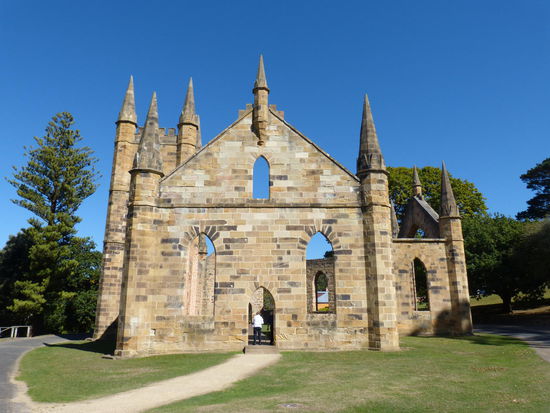 Beim Abstieg kommen uns dann doch auch einige andere Leute entgegen, die den Gipfel allerdings erst erreichen, als wir schon wieder im Auto sitzen, auf der Landzunge Richtung Norden bis zum Festland düsen und dann nach Süden auf die Küstenstraße biegen. Als letztes Ziel auf Tasmanien wollen wir noch das alte Gefängnis Port Arthur anschauen.