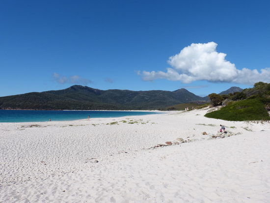 Da wir uns für den knapp zehn Kilometer langen Rundweg entschieden haben, wird es dann im weiteren Verlauf des Weges immer leerer und nach einem Besuch am wirklich wunderschön weißen Strand der Wineglassbay kommt uns dann kaum noch jemand entgegen.