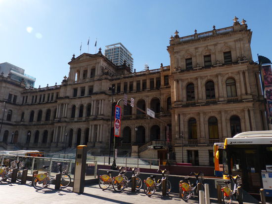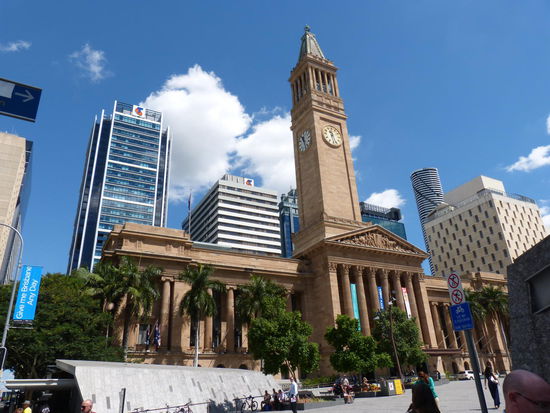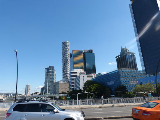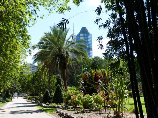 Marc wird auch nicht zu spät wach und nach Toast mit Orangenmarmelade geht es schnell wieder raus aus dem Hostel, die Stadt mal richtig unter die Lupe nehmen. Auch Brisbane hat eine erstaunlich hohe Skyline, wobei man als Berliner ja schon fasziniert ist, wenn ein Gebäude mehr als zehn Stockwerke hat. Im Groben und Ganzen wirkt Brisbane wie eine Mischung aus dem geschäftigen Sydney und dem künstlerisch entspannten Melbourne, was zu einem unglaublich angenehmen Stadtfeeling führt. Auch hier wechseln sich wieder alte Backsteingebäude mit nagelneuen Hochhäusern aus Stahl und Glas ab. Hätten wir nie für möglich gehalten, dass es uns hier so gut gefällt, nachdem wir am liebsten von Tasmanien direkt nach Singapur geflogen wären. Jetzt kann ich mir sogar sehr gut vorstellen, ein Auslandssemester hier zu machen, weil es so schön ist (und Surfers Paradise ist auch nur zwei Busstunden entfernt!). Wer früh aufsteht muss feststellen, wie lang der Tag doch ist, wenn man nicht ins Hotel zurückkehren möchte. Aber an sich ist es ja auch ganz schön an der frischen Luft und so verbringen wir einige Stunden im botanischen Garten auf irgendwelchen Parkbänken, bevor es nach einem Abstecher nach Chinatown in einen anderen Park geht und wir nachmittags auf irgendwelchen Bänken in der geschäftigen Fußgängerzone sitzend, Leute in ihrem Alltagstrott beobachten. Ohne schadenfroh zu sein, ist es schon ein bisschen witzig, wie der wichtig wirkende Geschäftsmann als einziger bei Rot über die Ampel läuft und direkt von einer Gruppe Polizisten aufgegriffen wird.