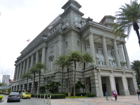 Wenigstens den letzten Tag wollen wir nutzen, Singapur ein wenig zu erkunden und das Wetter ist uns auch gesonnener als gestern. Die MRT-Linie vor unserer Haustür führt auch genau bis ins Stadtzentrum, wo es dann tatsächlich recht sauber ist. Wobei wir ganz ehrlich sagen müssen, so krass, wie es alle immer beschreiben, ist Singapur in Bezug auf die Sauberkeit nun wirklich nicht. Klar, es gibt weniger schwarze Kaugummiflecken auf dem Boden als in Berlin, aber das ist auch ein schlechter Vergleichswert und gerade in den Wohnvierteln liegen auch überall Zigarettenstummel und Plastikmüllreste rum. Wofür der Mensch selbst natürlich nichts kann, was aber auch nicht gerade für ein Sauberkeitsfeeling sorgt, sind die abertausenden Blütenblätter und normale Blätter, die überall auf den Bordsteinen und Straßen liegen. Naja, so ist das eben mit der Natur.