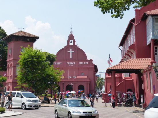 Gegen halb vier, nach Öffnung der T-Info, haben wir dann auch eine Karte und können durch die schöne Gasse mit roten Stadthäusern zur unspektakulären St. Francis Church schlendern, die vermutlich nur deshalb auf der Karte eingezeichnet ist, damit es nicht heißt, man benachteilige andere Religionen als den Islam. Dass bei Wikipedia genau das steht, konnten wir bis jetzt allerdings nicht bestätigen. Auf uns wirkt Malaysia bis jetzt wie ein sehr fortschrittliches und tolerantes Land.