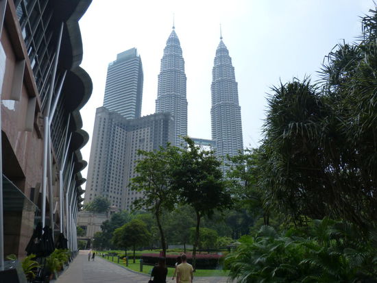 Danach geht es zu Fuß weiter zu den Petrona-Twin-Towers, zwei mit 452 Metern Höhe wirklich sehr, sehr eindrucksvolle und imposante Gebäude, die über eine Brücke miteinander verbunden sind.
