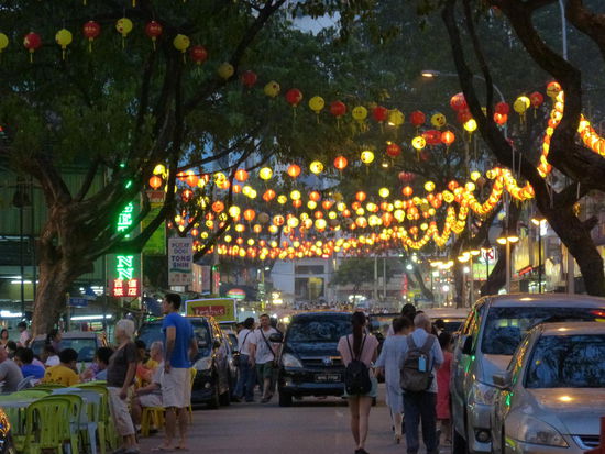 Dass wir auch heute wieder mit Verspätung angekommen ist vor allem die Schuld eines unfassbaren Gewitters mit sintflutartigen Regenfällen, die die komplette Autobahn überspülen und unter Wasser setzen und dann sind auch noch zwei Spuren gesperrt, weil ein Baum auf die Fahrbahn gestürzt ist. Gott sei dank sitzen wir bei diesem Unwetter noch gemütlich im Bus, während es bei der Hotelsuche nur noch ein bisschen nieselt. Nass ist trotzdem noch alles, was auf den gefliesten Bürgersteigen vor allem mit Badelatschen sehr schön ist. Darauf bedacht, sich nicht mit vollem Gepäck bäuchlings auf den Boden zu packen, geht es also im Schneckentempo voran. Leider landen wir zuerst bei einer Zweigstelle unseres vorgebuchten Hotels, weshalb wir den Weg wieder zurücklaufen müssen. Die Lage direkt zwischen Chinatown und dem Central Market ist auf jeden Fall super und auch von der Sauberkeit kann man nichts gegen das "Submarine Guesthouse" sagen. Danach geht's wie immer noch mal nach draußen, die Gegend erkunden. Wir finden ein neues Hotel, für nur 60 statt 70 Ringgit, das zwar ohne Frühstück, aber dafür mit eigenem Bad ist. Und auf trockenes Erdbeermarmeladentoast können wir dann gerade so verzichten.