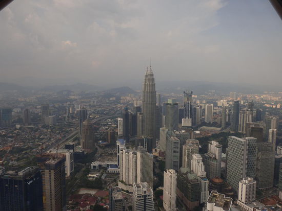 Die Aussicht in 276 Metern + Hügelhöhe, auf dem der Fernsehturm steht, ist entsprechend berauschend und selbst unabhängig von den Twin-Tower, hat die Skyline von K. Lumpur einiges zu bieten. Marc und ich genießen also die Aussicht, während die anderen beiden die ganze Zeit auf ihren Smartphones rumtippen. Es ist wirklich nicht mehr normal, wie lebenswichtig diese Dinger für Asiaten sind. Und wir fanden das in Deutschland schon immer furchtbar.