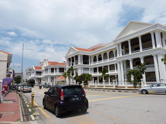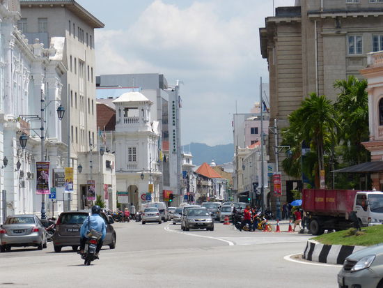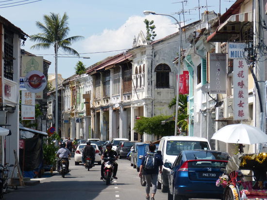 Ticketbüros für die Fähre nach Langkawi gibt's hier auch gleich um die Ecke und so buchen wir uns ein Ticket für morgenfrüh um 8:30 Uhr. Das Phänomen der globalen Fußgänderunfreundlichkeit gewohnt, schaffen wir es dann, auch ohne Blessuren die bürgersteiglose Hauptstraße zu überqueren und wieder in die ruhigen Gassen der Innenstadt abzubiegen. Wie gesagt, es gibt ein paar einzelne, besonders schöne Gebäude, aber auch sonst ist ein Spaziergang ohne Ziel durch die Gassen Georgetowns, fernab der Hauptstraßen, einfach nur schön.