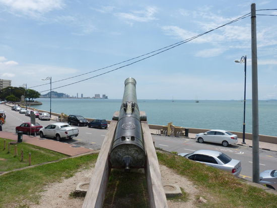 Little India wurde ja nun gestern schon erkundet und so haben wir uns ein paar bedeutende Gebäude aus der Kolonialzeit auf der Karte markiert, die es nun zu besichtigen gilt. Zu empfehlen ist der Abstecher zur Küste und dem nahe gelegenen Fort Cornwallis, auf dessen Mauern man für eine kleine Eintrittsgebühr zumindest drei Viertel der Sternform des Forts ablaufen kann.
