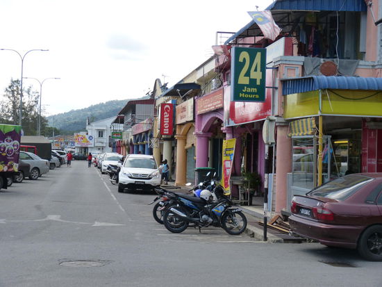 Mit einem Stadtplan bewaffnet kommen wir dann auf die wahnwitzige Idee, die gut drei Kilometer zum Hotel in praller Mittagssonne zu laufen. Wobei man rückblickend sagen muss, 2€ sind eben 2€, die wir auf diese Weise fürs Taxi gespart haben. Und man darf auch nie vergessen, dass man zu Fuß ja auch immer viel mehr von der Gegend sieht. Auch wenn es jetzt nicht so viel zu sehen gibt. Wie überall in Malaysia gibt es hier ein paar von diesen riesigen Häuserkomplexen, in denen man ganz locker die Bewohner einer ganzen Kleinstadt unterbringen könnte. Mal sind es Regierungsgebäude, mal Kongresszentren und Hotels, Einkaufscenter oder in seltenen Fällen, vor allem aber in K. Lumpur, tatsächlich Wohnhäuser. Ansonsten gibt es noch einige Geschäfte, kleinere Hotels und zweigeschossige Wohnhäuser, unter deren Obergeschoss dann auch meistens der Bürgersteig entlangführt. Wenn es denn einen gibt. Die meisten Betonplatten sind hier im Laufe der Zeit zerborsten und man muss aufpassen, nicht in einem der unzähligen Wassergräben zu landen. Die bis zu anderthalb Meter tiefen Betonrinnen sollen den sintflutartigen artigen Regen ins Meer leiten, dienen aber mit diversen Essensresten und anderen Abwasserpfützen drin ganz nebenbei noch als ideale Brutstätte für Keime und widerliche Gerüche.