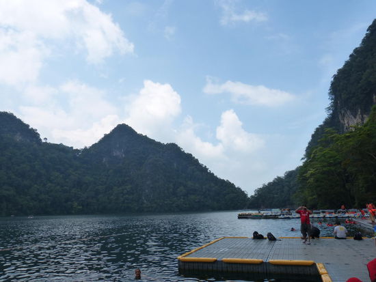 Danach geht's zur Adlerfütterung, wo die vielen Tourführer von ihren Booten aus Fischreste ins Meer werfen, nach denen dann unzählige Adler im Sturzflug mit ihren Krallen greifen. Ist schon ziemlich beeindrucken, gerade weil es so unfassbar viele von diesen Riesenvögeln sind. Als letzte Station steht dann ein im Talkessel gelegener Süßwassersee auf dem Plan, wobei man natürlich sagen muss, allein die Bootsfahrt zwischen den unzähligen versplitterten Inseln mit ihren schroffen, aber trotzdem grün bewachsenen Felshängen hindurch ist den gerade mal 9€ p.P. billigen Ausflug wert. Der Süßwassersee ist dann ganz nett, ist aber eben auch nur ein See, in den man immer mehr neue schwimmende Stege gebaut hat, zwischen denen die Besucher baden gehen können.