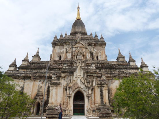 Für den Sonnenuntergang ist es noch zu früh und ohnehin zu bewölkt, weshalb es weiter zum ausgesprochen eindrucksvollen Dhammayangyi Tempel geht, der mit seiner Form und der massiven, sehr exakt gearbeiteten Bauweise am ehesten an eine Pyramide erinnert.