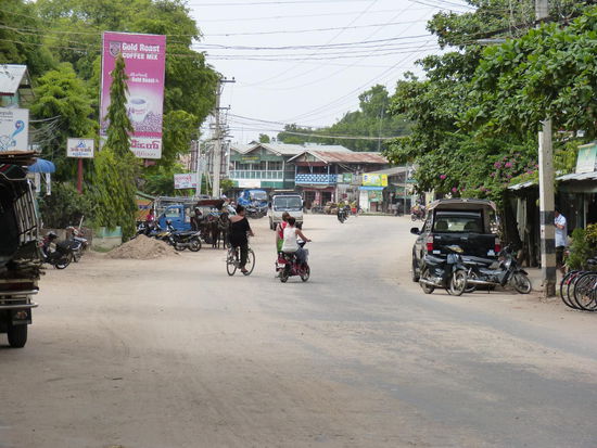 Mit jedem Meter, den wir uns wieder der Hauptstraße nähern, werden die Hütten etwas größer und gehen schließlich in zum Teil sehr ansehnliche Holzhäuser über, als wir die asphaltierte Straße erreichen, von denen Myanmar im Übrigen erstaunlich viele hat.