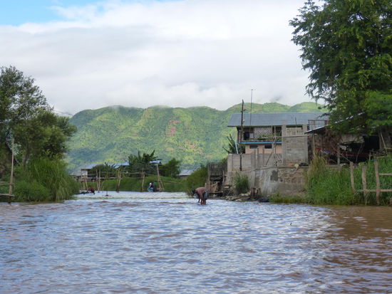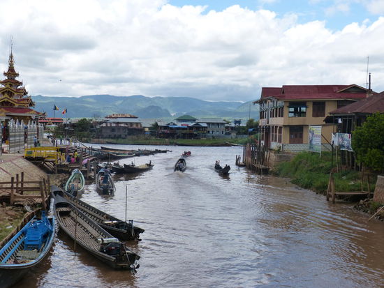 Nach acht Stunden Busfahrt kommen wir endlich an der Endstation an, in einem Ort südlich von Nyaung Shwe, von dem wir immer noch nicht wissen, wie er heißt. Vielleicht ist es auch nur ein Randbezirk. Noch im Bus müssen wir dann gleich erstmal 10$ pro Person für das Ticket abdrücken, das uns erlaubt, sich in der Inle See Region aufzuhalten. Gerade mal einen Dollar kostet uns die für burmesische Verhältnisse unfassbar günstige Taxifahrt zum nächstbesten Hotel, wo uns das Zimmer mit eigenem Bad und Frühstück knapp über 20$ Dollar pro Nacht kostet. Wer auch immer sich den Namen "Lady Princess HOTel" ausgedacht hat. Vielleicht unter anderem, weil es keine Klimaanlage gibt, aber die braucht man hier auch nicht so dringend, denn zum ersten Mal seit Tasmanien haben wir wieder Tagestemperaturen unter 30°C. Für morgen wird dann gleich noch eine Tagestour gebucht, bei der es mit einem Boot über den See geht. Für knapp zehn Euro für uns beide kann man nichts falsch machen.