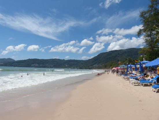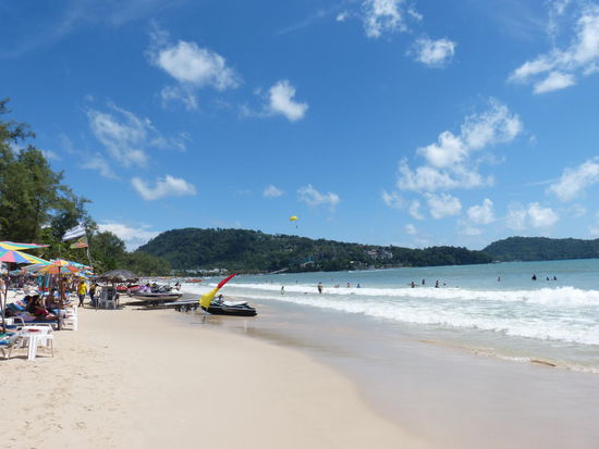 Die Zeit in Phuket vergeht dann die nächsten Tage sehr ähnlich. Es gibt einen schönen Sandstrand, bei dem wir uns bemühen, ihn zumindest einmal am Tag für ein paar Stunden aufzusuchen. Die Wellen sind meistens schön groß und das Wetter stimmt auch mehr oder weniger. Leider ist genau der Tag komplett verregnet, den wir eigentlich als Strandtag auserwählt hatten und durch den vielen Regen hat es dann am Tag danach auch noch Unmengen an Müll ins ansonsten erstaunlich saubere Meer gespült, was dem Badespaß zumindest an diesem Tag entsprechend mindert. Wer Einsamkeit sucht, ist auf Phuket natürlich fehl am Platz, zumindest in Patong Beach, aber nach 10 Monaten Weltreise genießen wir die Anwesenheit anderer Touristen inzwischen ja regelrecht.