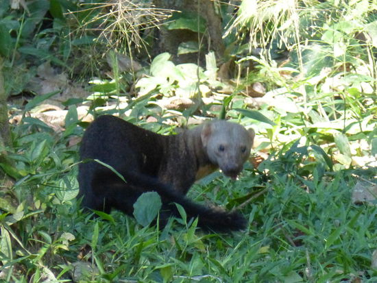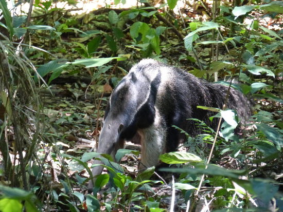 Plötzlich, wir sind gerade mit dem Beobachten einer Blattschneiderameisenstraße beschäftigt, raschelt es direkt neben uns. Ein dunkler Schatten schiebt sich aus dem Dickicht in unser Blickfeld. Vollkommen regungslos beobachten wir das ausgewachsene Exemplar eines Ameisenbärs, wie es immer näher auf uns zukommt und uns mit seinen schlechten Augen einfach übersieht. Erst als er schon fast auf einen Meter herangekommen ist, riecht er uns plötzlich. Zu Tode erschrocken macht das Tier kehrt und flüchtet ins Unterholz zurück. Doch ein Foto von ihm ist uns sicher.