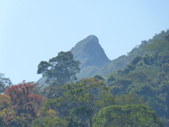 Unterwegs legen wir noch einen Stopp am Ufer des Benirivers ein, von wo uns ein kurzer Fußmarsch durch den Dschungel zu einer steilen Bergwand führt. Dutzende grüne und rotblaue Papageien sitzen hier in den unzähligen Löchern in der Felswand und in den Baumkronen über uns. Als uns unser Guide die Felswand hinauf, noch näher an die bunten Vögel heran, führt, empfangen uns die Papageien mit lautem Protestgeschrei.