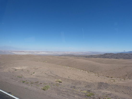 Keine 5 Kilometer hinter der Grenze mündet die Staubstraße auf einer Asphaltstraße und verdeutlicht den finanziellen Unterschied zwischen Bolivien und Chile. Insgesamt 50 Kilometer lang geht es dann mehr als 2500 Höhenmeter nach unten ins Tal.