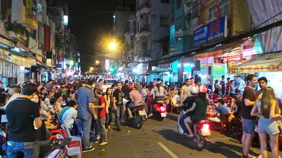 Abends in unserem "Backpackerviertel" (Pham Ngu Lao Area) erwachen die Gassen zum Leben, was man tagsüber nicht einmal erahnen könnte. Es gibt auch hier wieder kleine BierPubs die mit Plastikstühlen die Straße halbwegs voll stellen und Bier für ca. 40 Cent verkaufen. Es gibt verschiedenste Essenstände mit belegten Baguettes (sowieso typisch für den Süden Vietnams), Fleischspieße, Maisgerichte, komische Fischspieße (noch nie probiert - der Geruch erklärts warum ) und vieles mehr. Es ist eine schöne Atmosphäre auf einem kleinen Plastikhocker zu sitzen, ein Bier Saigon in der Hand und das Treiben auf der Straße zu beobachten.