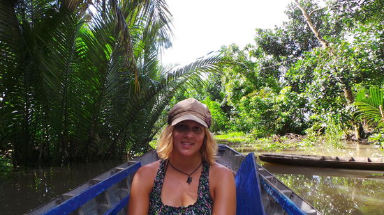Das Busunternehmen brachte uns bis an unser Guesthouse in Can Tho, welches das Zentrum und Ausgangspunkt für Trips am Mekong Delta ist. Als wir ankamen, waren die Straßen am Flussufer schon halbwegs überflutet - der Mekong hat seinen höchsten Stand von ca. 10 Metern erreicht. Wir buchten eine Bootstour für den nächsten Morgen welche früh um 5 Uhr startete, damit wir das Geschehen der "floating markets" erleben können. Es war einfach nur erstaunlich was zu dieser Uhrzeit morgens in Vietnam schon los ist - es läuft schon ab wie zur normalen Mittagszeit, jeder ist wach, verkauft seine Waren, kocht das Essen für den Tag usw.! Die Vietnamesen sind echte Frühaufsteher, manche Frauen stehen um 3 Uhr auf und bereiten das Essen für den kommenden Tag zu! Oder die Männer zum Beispiel treffen sich um 5 und sitzen zusammen, trinken Kaffee und plaudern - das würden wir daheim so gegen 10 Uhr machen