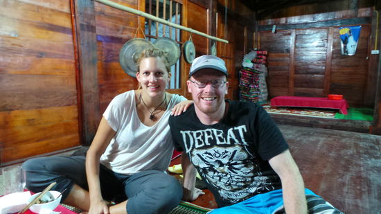 Auf jeden Fall die zwei Männer die uns mitnahmen, waren super freundlich, sie fuhren uns nicht nur in die nächste Stadt, sondern luden uns auch noch zum Abendessen ein! Wir konnten es kaum fassen! Es war ein super Abend dann noch mit einem genialen Einblick wie die Einheimischen "richtig" speisen! Auf Kissen am Boden saßen wir und es wurde alles mögliche aufgetischt - Hühnchen, Rind, sowas wie Hackfleisch, Reis, Bambus und so viel mehr - vom meisten wussten wir nicht mal was es ist! Hinzu kam dann noch, dass fast nach jedem Bissen es einen Wodka zu trinken gab Der Wodka wurde in eine Schüssel geleert damit die Gläser nur noch eingetunkt werden mussten Wir leerten zwei Flaschen Wodka und unterhielten uns via Google Übersetzer! Der ganze Tag stellte sich also nicht als kompletter Alptraum heraus, sie lieferten uns am Guesthouse ab und wollten keinen Cent! Waren wir glücklich dass dies gut endete
