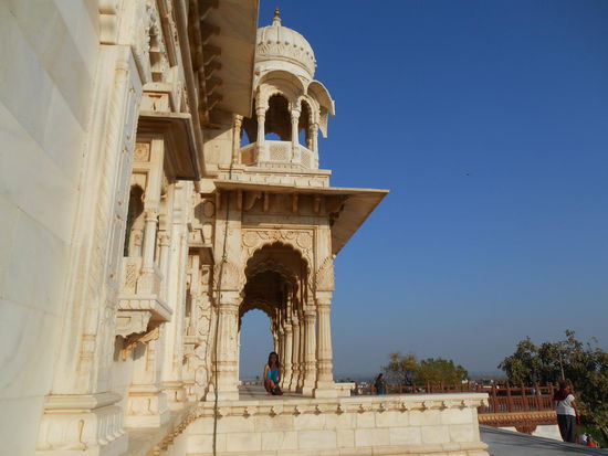 Nach dem Besuch des Palastes liefen wir noch zum Jaswait Thada, einem Memorial für alle Maharajas dieses Ortes, das ebenfalls wie ein kleiner Palast aus weißem Marmor gebaut wurde. Hier gab es auch einen herrlichen Garten, der wie eine kleine Oase auf uns wirkte und in dem wir bis zur Schließung herumwandelten.