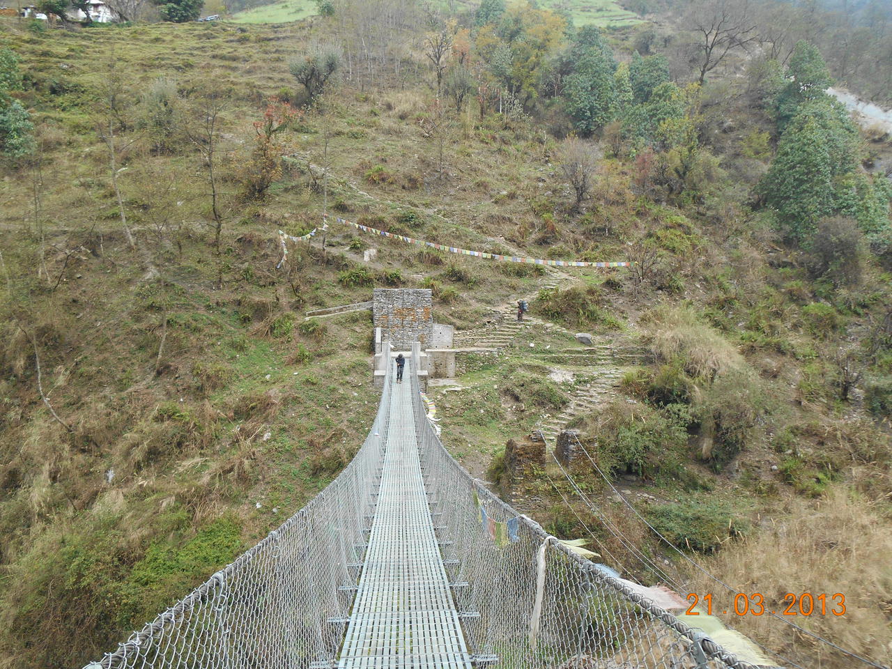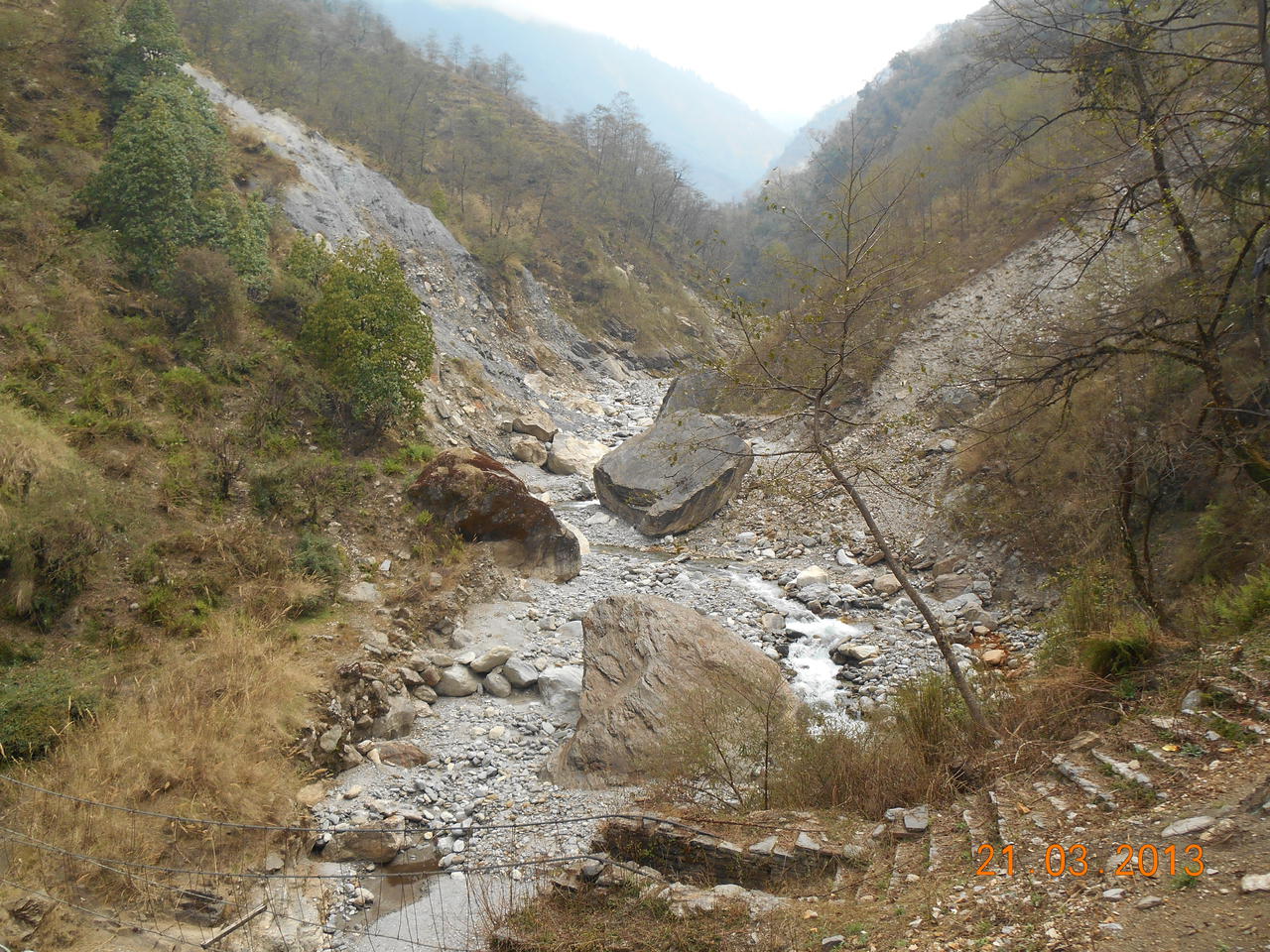 Nachdem wir dann in Chuile, einem kleinen Plateau, das regelrecht zum Verschnaufen einludt, unser Wasser aufgefüllt hatten (Wir kauften unterwegs nie Wasser, sondern versorgten uns immer an natürlichen Quellen bzw. dort, wo auch die Einheimischen ihr Trinkwasser auffüllen.), machten wir eine große Teepause am Kimrong-Khola-Fluss - ja, wir benutzten das Wasser für den Tee aus dem Fluss, der hier aber wirklich sehr sauber war .