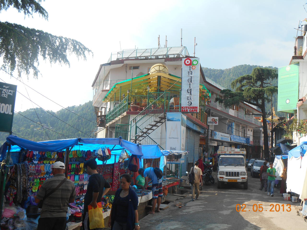 Unser 1. Mai war nicht gerade sehr spektakulär, wir verbrachten nämlich den ganzen Tag im Bus nach Dharamshala. Zuerst fuhren wir mit einem Lokalbus von Kasol nach Bhuntar (45,- Rs p.P.) und dann ging es mit einem Minibus weiter, den wir vorher schon für 550,- Rs pro Person gebucht hatten. Wir kamen gegen 19.00 Uhr in Dharamshala an und wunderten uns, warum der Fahrer nicht anhält, um uns herauszulassen. Er fuhr noch ca. 9 km weiter den Berg hinauf und ließ uns in einem Ort namens McLeodGanj heraus. Alle Proteste halfen nichts, man versicherte uns, dass alle Touristen hierher kämen und wir genau richtig wären .