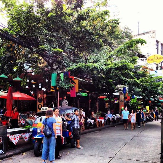 Am Flughafen in Bangkok klappte dafür alles bestens. Mit dem Taxi fuhren wir zur Khao San Road und nahmen uns ein Zimmer im Hotel, in dem wir vor zwei Jahren schon einmal übernachtet hatten. Leider keine sehr gute Idee... Für 800 Baht (ca.19 €) musste man die Toilette selbst noch einmal putzen (was für ein Glück, dass wir mit diversen (WC-) Reinigungstüchern und Desinfektion bestens ausgerüstet sind) und der Lärm der Khao San, sowie der Lobby war inklusive. Nachdem wir die Rucksäcke abgestellt hatten mussten wir zunächst die Lichter, Musik und unzähligen Touristen auf uns wirken lassen. Letztlich kamen wir zu dem Schluss - die Nebenstraßen der Khao San sind viel entspannter! Dort aßen wir dann auch Pad Thai an einem der vielen Straßenstände.