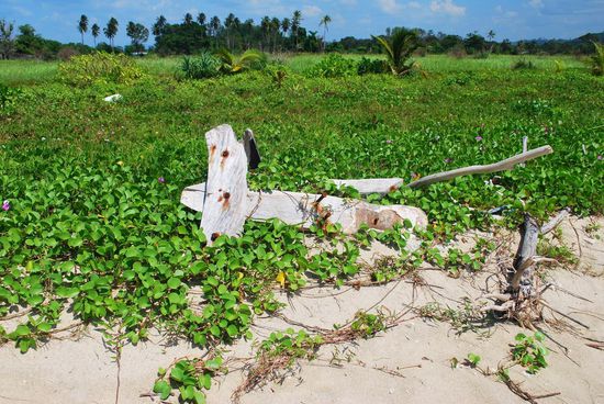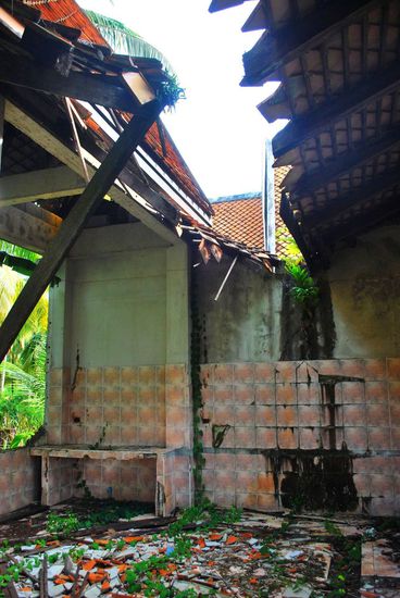 Das Thepthare Lagoon Beach Resort wurde ebenfalls komplett zerstört - auch hier steht nur noch das Hauptgebäude. Der Großteil der Gäste hat den Tsunami nicht überlebt, da es direkt am Strand liegt und das Wasser von zwei Seiten heranströmte.