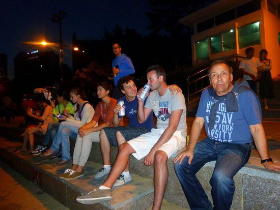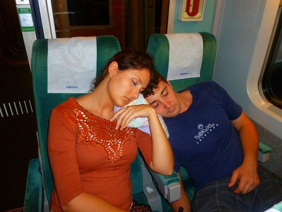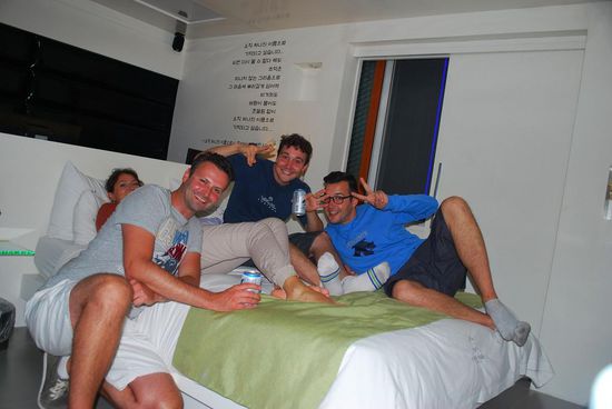 Nach dem Essen liefen wir noch am Hafen entlang und durch die Promenaden. Zu unserem 'Liebeshotel' (ja es nennt sich so) "The Sun" im Strandabschnitt von Busan, fuhren wir eine ¾ Stunde mit der Metro. In ganz Südkorea kann man mit ein und der selben Chipkarte die öffentlichen Verkehrsmittel nutzen.