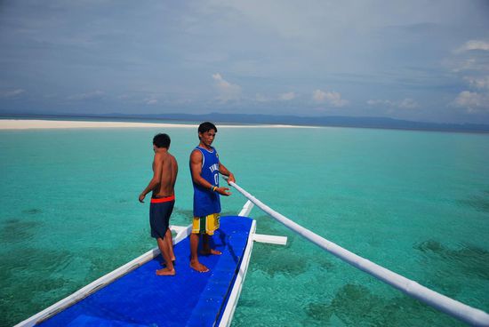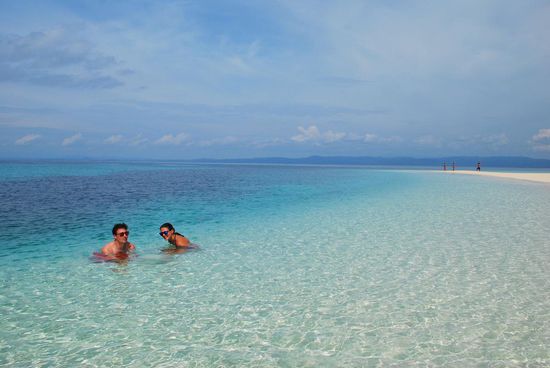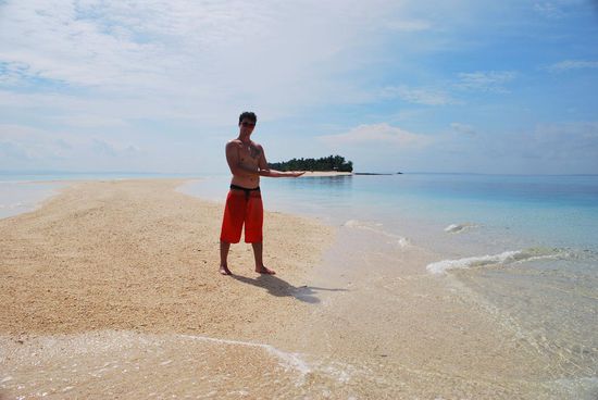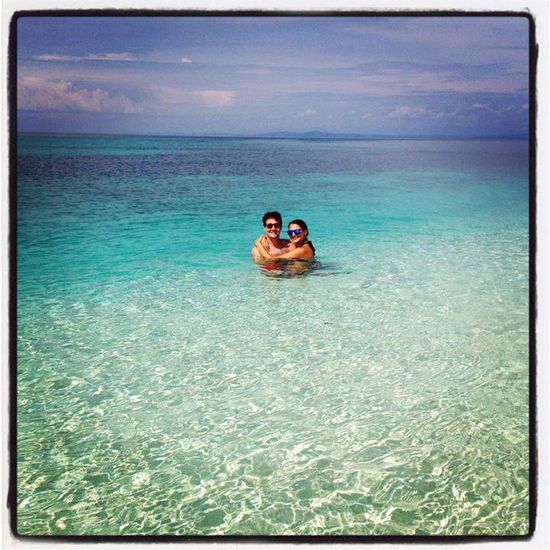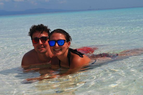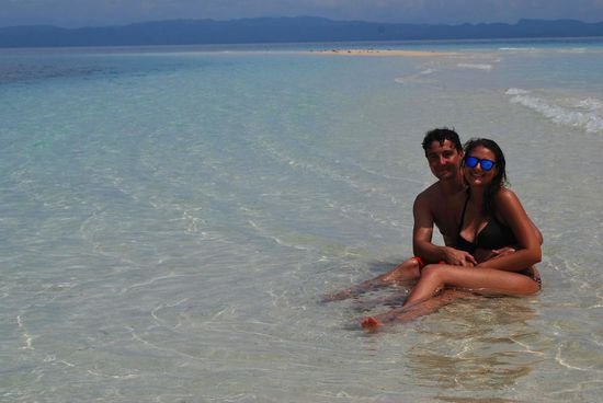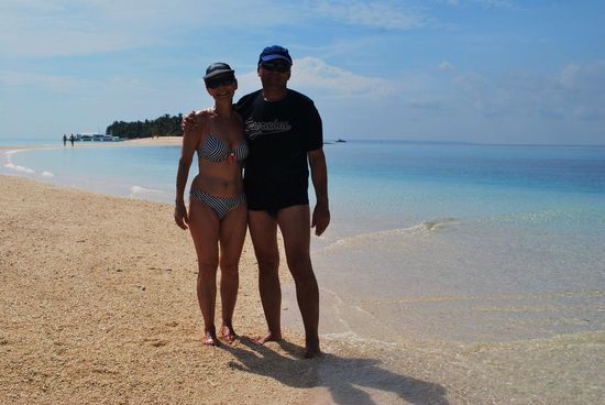 Um 9:30 Uhr brachen wir 4 mit 16 weiteren Personen zur Tagestour nach Calangaman Island auf. Die Bootsfahrt dorthin dauert ca. 2 Stunden. Kurz vor der Insel wurde ein Dive-Stopp eingelegt. Während die Taucher eine Stunde unter Wasser waren, wurden die Schnorchler an Land gebracht. Das Schnorcheln an der paradiesischen Insel ist zwar längst nicht mit dem Schnorcheln auf den Malediven oder in Ägypten vergleichbar weil einfach die bunte Fischvielfalt fehlt, jedoch ist das Wasser glasklar.