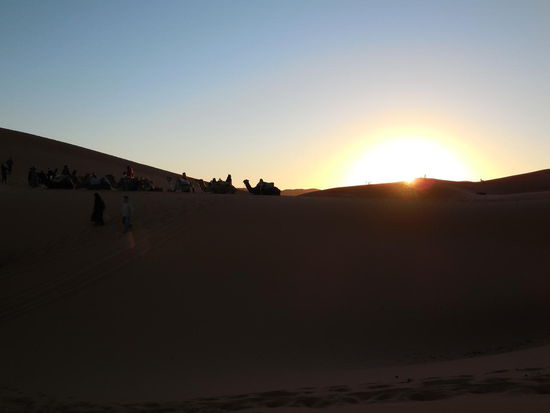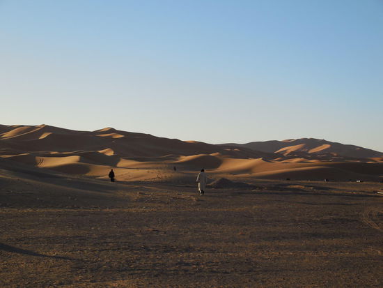 Und dennoch: Ich kaufe ihm eine schreckliche Seifenschale aus "Wüstengestein" ab, einfach nur für seine Hilfe während des "Spazierganges" durch die Wüste und seine "Unterhaltung" - verständigen konnten wir uns selbst auf französisch praktisch nicht, aber er hat mir seine Hand geboten, Fotos von mir gemacht, mich aus dem Sand wieder hochgezogen und mich wie ein Kamel vorwärts gepeitscht. Er hat geduldig neben mir im Sand gesessen, während ich einfach nur aus der Puste war. Schlicht: Er war süß ! Und vielleicht 17 Jahre jung... Ich habe andere Gruppen mit Berbern im Sand sitzen sehen, die partout nichts kaufen wollten. OK, kann ich auch verstehen, kein Mensch braucht das Zeug, aber die brauchen das Geld, und wegen 3 EUR Aufstand machen ? Das werde ich nie verstehen !