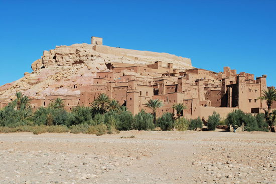 Wir verlassen die ehemalige Garnisons-Stadt der Fremdenlegion Ouarzazate , kommen aber am Stadtrand noch am "Hollywood" Marokkos vorbei: Den Atlas-Studios, die man auf Führungen auch besichtigen kann. Angeschlossen ist auch das "Oscar-Hotel". Die Kulisse Marokkos ist insbesondere für historische Monumentalfilme der perfekte Hintergrund und wo auf der Welt sonst hat man diese Möglichkeiten ohne Sicherheitsrisiko für alle Beteiligten ? Eben: Nur hier in Marokko. Unter anderen sind folgende Filme hier - zumindest teilweise - gedreht worden: Die Bibel, Das Jesus-Video, Die Päpstin, Der Medicus, Game of Thrones, Gladiator. Beeindruckend, oder ? Hingegen ist nicht eine einzige Szene des Film-Klassikers "Casablanca" in Marokko gedreht worden, nicht ein Fitzelchen davon. Humphrey Bogart und Ingrid Bergman haben Marokko wohl nie zu sehen bekommen. Zu "Rick´s Café" komme ich später...