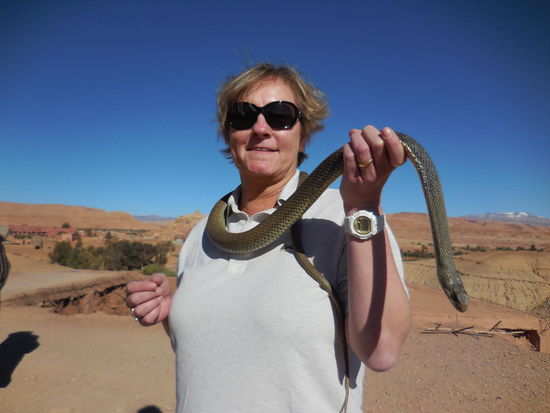 So, jetzt ist hier die allerbeste Gelegenheit, die Revival-Fotonummer durchzuziehen mit der Kobra um den Hals: Ich, 35 Jahre nach dem ersten Mal in Tetouan in Marokko mit einer Schlange um den Hals.
