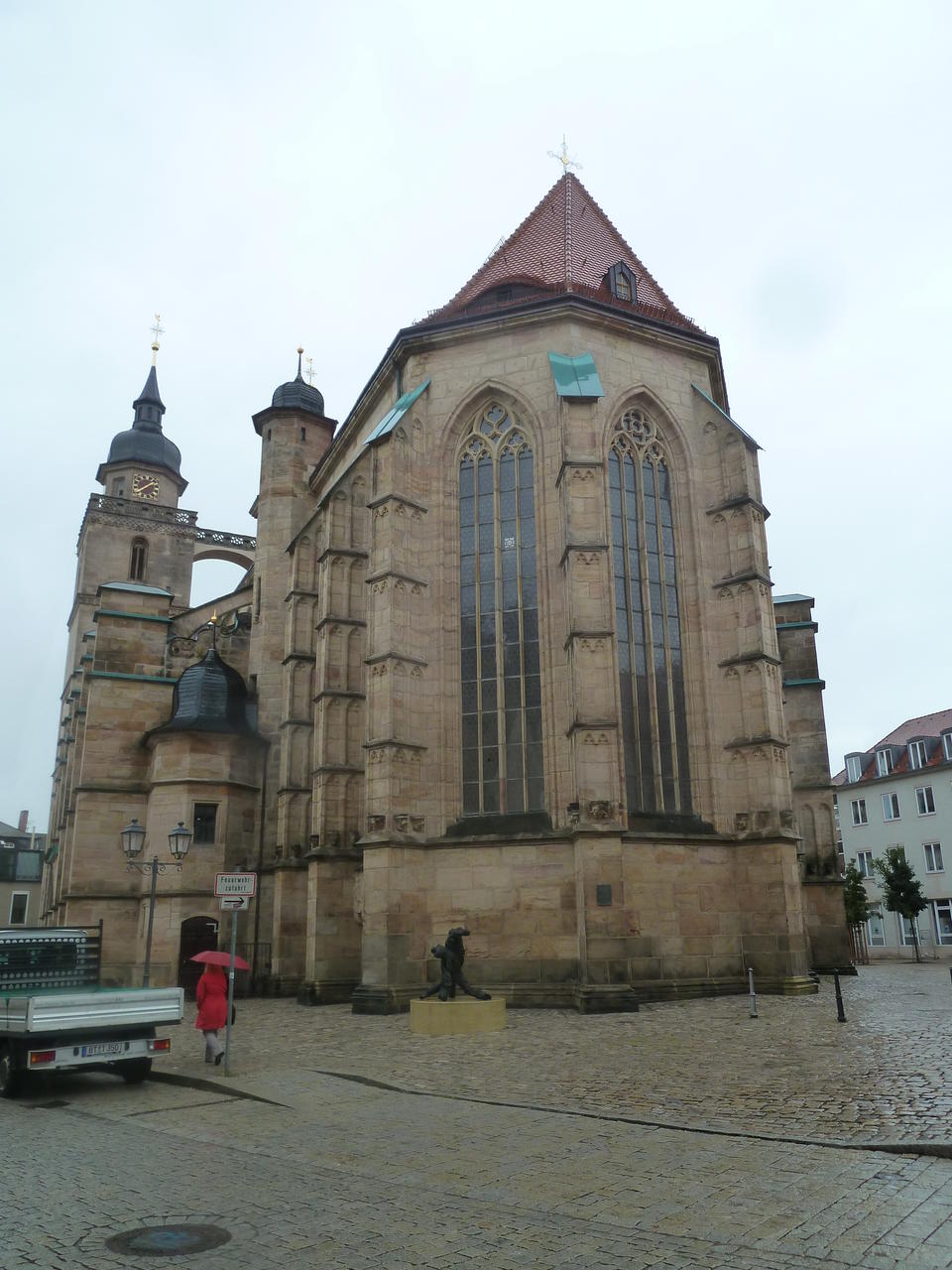 Wir parken in der Nähe der Stadtkirche in der Dammstrasse und laufen zunächst einmal zum ältesten Gebäude der Stadt Bayreuth - der Stadtkirche.