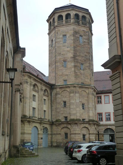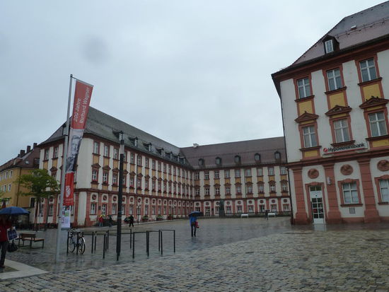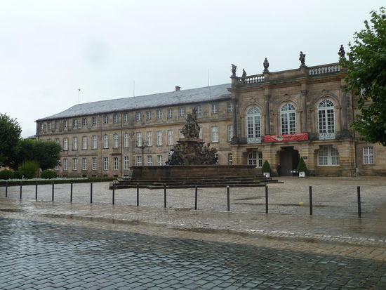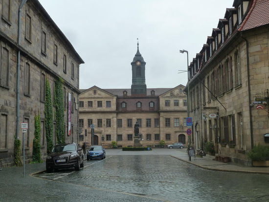 Wir nähern uns durch den Hofgarten dem Neuen Schloss, das als augenfälligstes Beispiel für das markgräfliche Bayreuth an der Ludwigstraße liegt. Ein großer Platz mit Brunnen und eine lange Hausfassade schaffen den repräsentativen Rahmen für die Residenz und für die 2007 wiedereröffnete Zweiggalerie der Bayerischen Staatsgemäldesammlungcn.