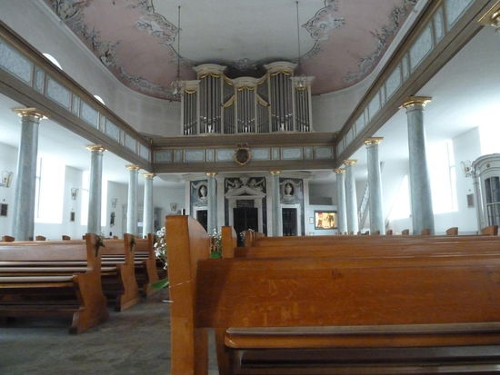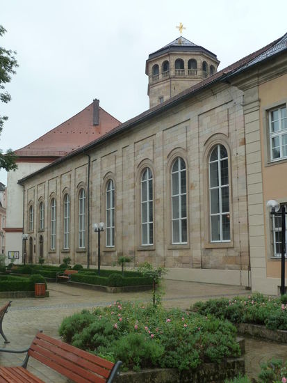 Der Eingang zur Schloßkirche liegt etwas versteckt, aber man sollte sie auf jeden Fall besuchen. An die Stelle des Ost- und Nordflügels entstand nach dem großen Brand die Schlosskirche, das Gontardhaus und das Palais d'Adhémar. In der Schlosskirche befindet sich die Fürstengruft mit Sarkophagen des Markgrafenpaars Friedrich und Wilhelmine.