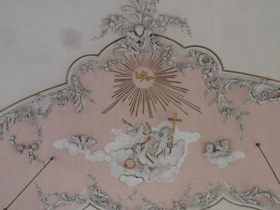 Nach Zerstörungen im Zweiten Weltkrieg erhielten die Trakte um den Ehrenhof in den 50er Jahren des 20. Jahrhunderts das Aussehen aus der Zeit um 1700 zurück. Die Relieffelder mit von Lorbeerkränzen umgebenen Büsten stellen antike Götter und Kaiser sowie zeitgenössische Herrscherpaare dar.