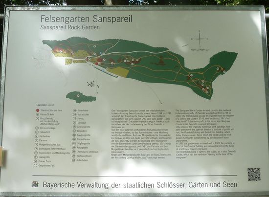 Den Felsengarten Sanspareil charakterisierte Markgräfin Wilhelmine in einem Brief an ihren Bruder, Friedrich den Großen: "Die Natur selbst war die Baumeisterin". In der Tat bestimmen natürliche bizarre Felsformationen im Buchenhain von Sanspareil das Bild des ab 1744 angelegten Gartens. In der Markgrafenzeit wurden einzelne Felsen und Höhlen nach Schauplätzen des französischen Romans "Die Abenteuer des Telemach" benannt.