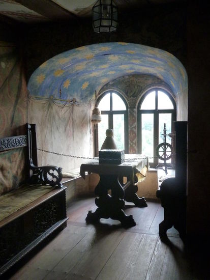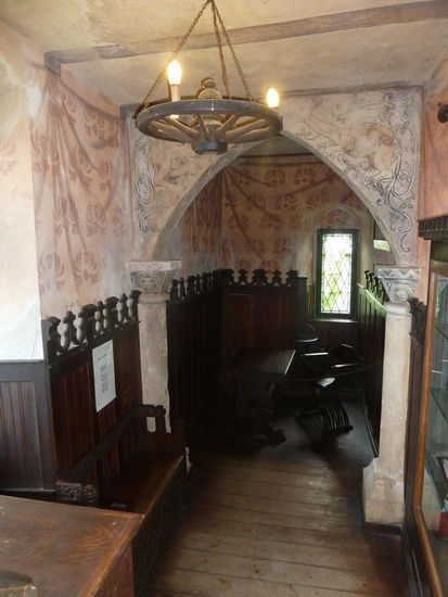 Nur Teile des Privatsbesitzes sind zu besichtigen: Im Turm sind alte Waffen, Möbel und und Kuriositäten (Geweihe - darunter ein Elch). In der Kapelle mit einfachen Wandgemälden befindet sich ein Kruzifix aus dem 15. Jh.