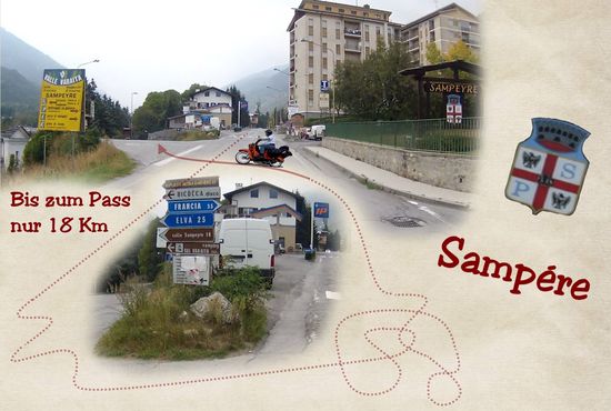 Im Ort wollte ich mich entscheiden ob es noch einen kleinen Abzweig über einen recht unbekannten Pass "Col di Sampéyre" gehen sollte, oder ob ich wegen der Wolken eher den direkten Weg nach Cuneo nehmen würde.